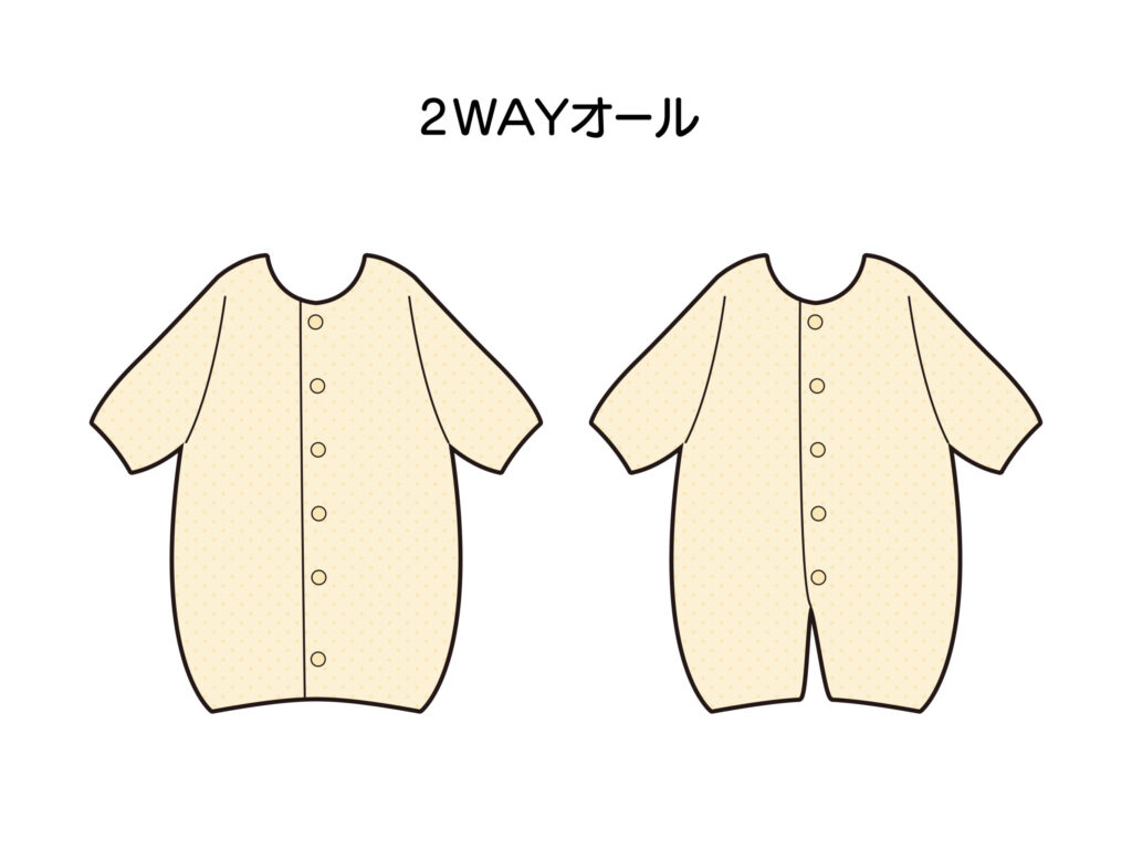 裾の留め方でズボン型にもワンピース型にもなるウェアで、長い期間使用可能。
